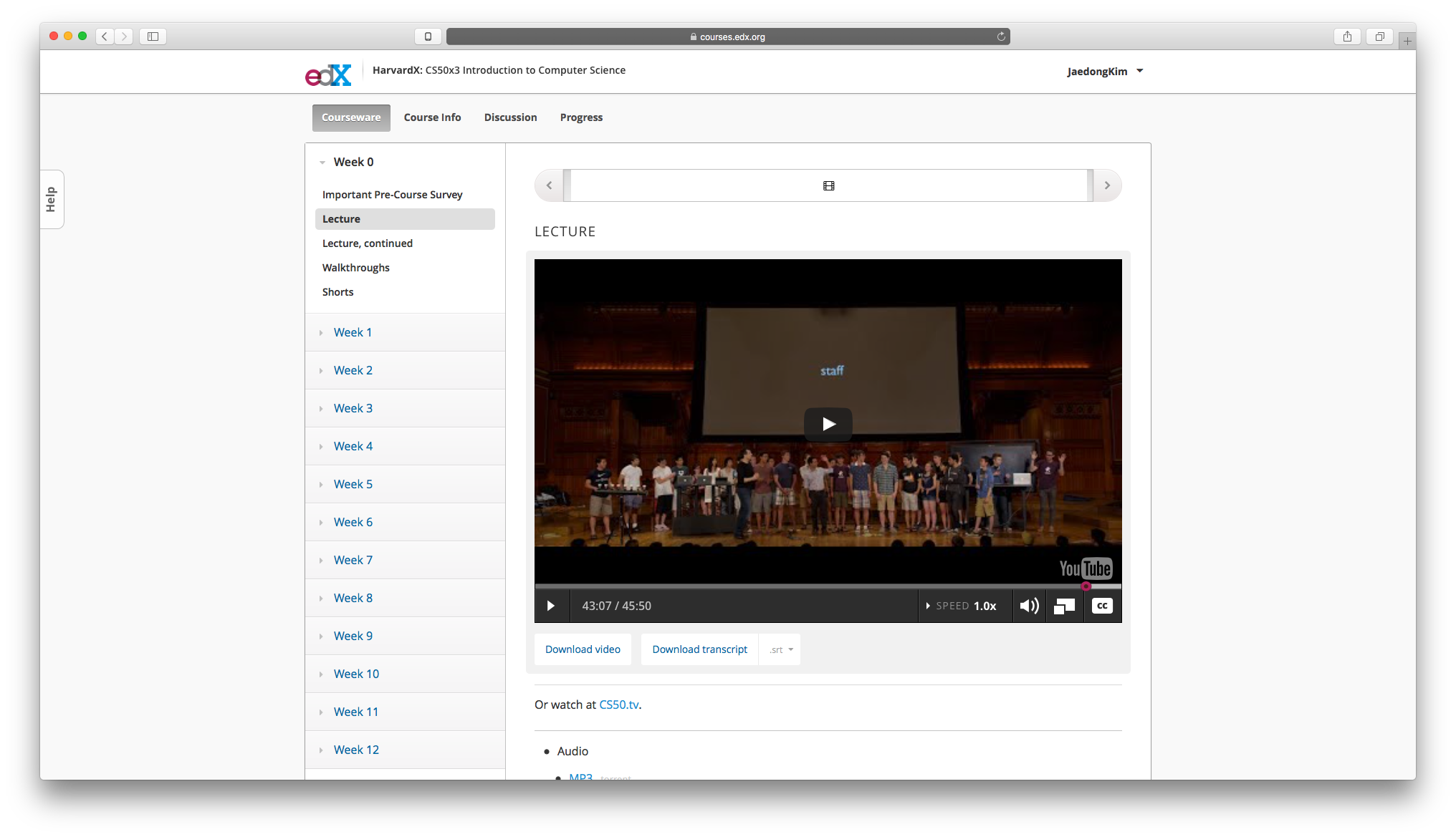 - CS50๋ ๋ฌด๋ฃ๋ก ์๊ฐ์ด ๊ฐ๋ฅํ๋ฉฐ self paced course, ์ฆ ์์ ์ด ์ํ๋ ๋์ ์ธ์ ๋ ์ง ๊ฐ์๋ฅผ ๋ณด๊ณ ๊ณผ์ ๋ฅผ ์ ์ถํ ์ ์๋ค.