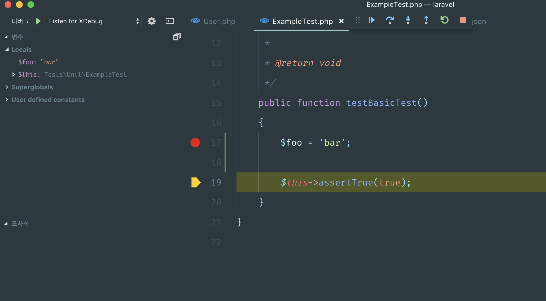 phpunit์ ์คํํ๋ค. - ์ข์ธก์ ๋๋ฒ๊น