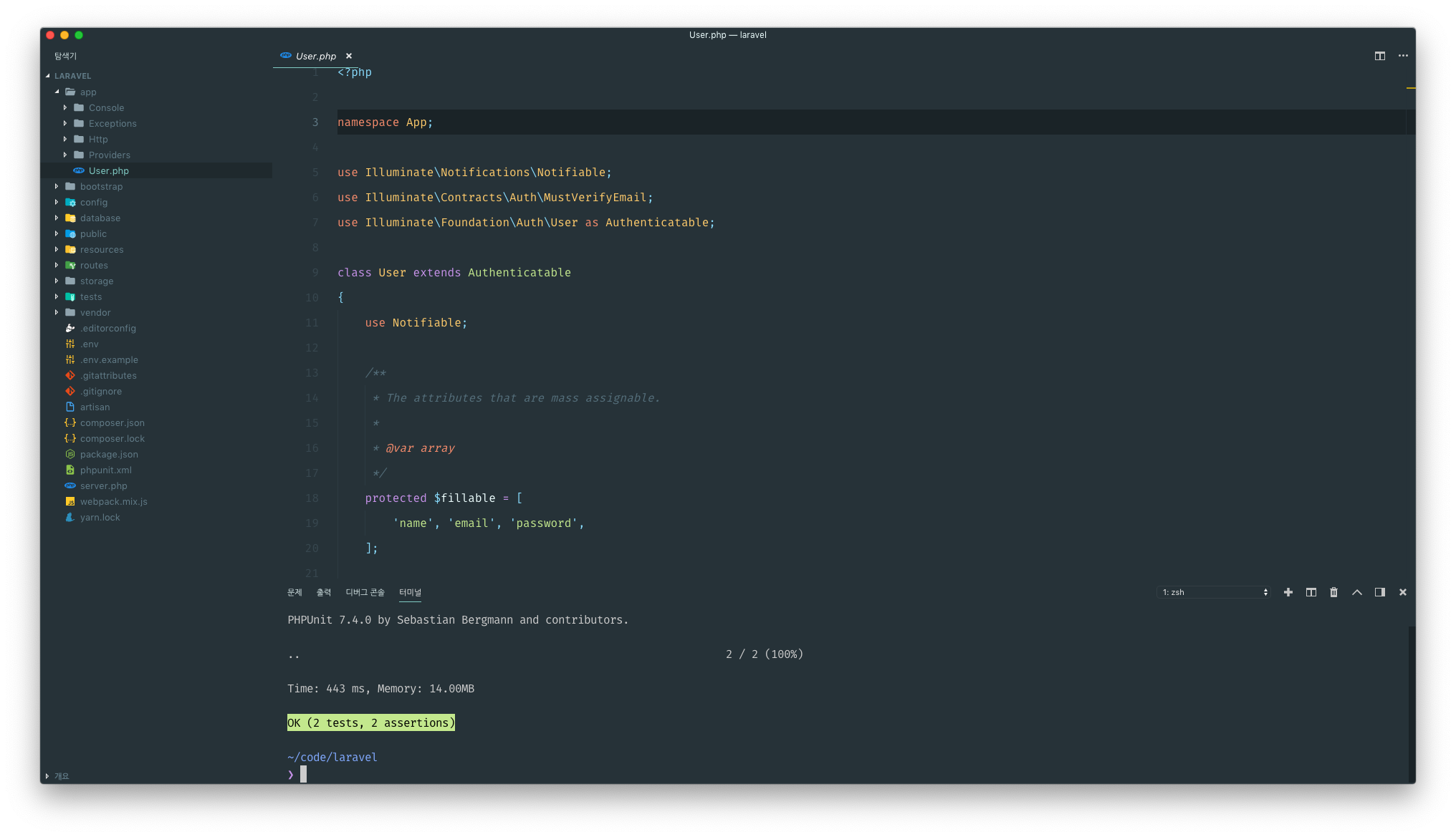 Laravel Mix를 사용하는 경우 npm run watch 같은 명령을 실행시켜두고 소스 코드 수정시 자동으로 빌드되게 할 수도 있고 Artisan 명령이나 Git 명령, PHPUnit이나 phpspec 등도 실행할 수 있다. 물론 Artisan이나 Git, 테스트용 확장 프로그램이 있어서 반드시 터미널을 사용해야 하는 것은 아니다.